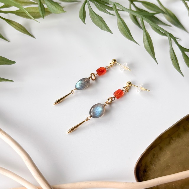ラブラドライトとカーネリアン・ダガーチャームのピアス
