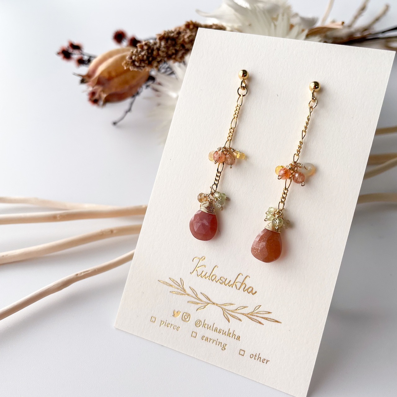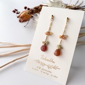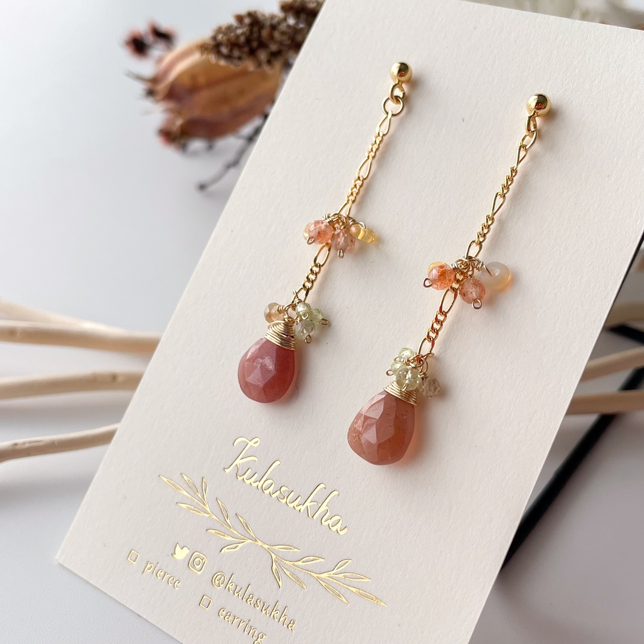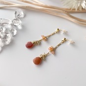 ブラウンムーンストーンと小粒天然石の小花ピアス