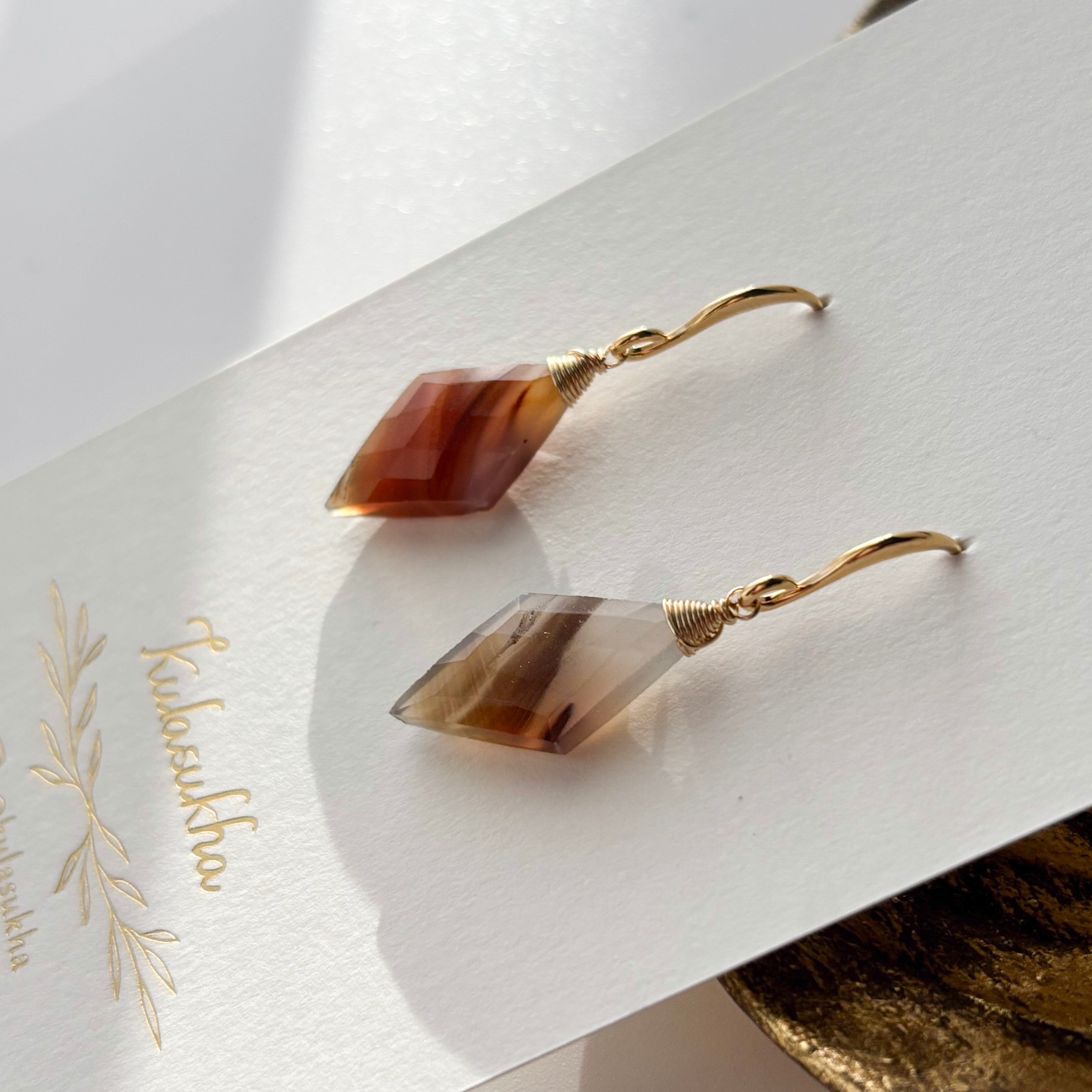 鼈甲のような色味のモンタナアゲートの1粒ピアス
