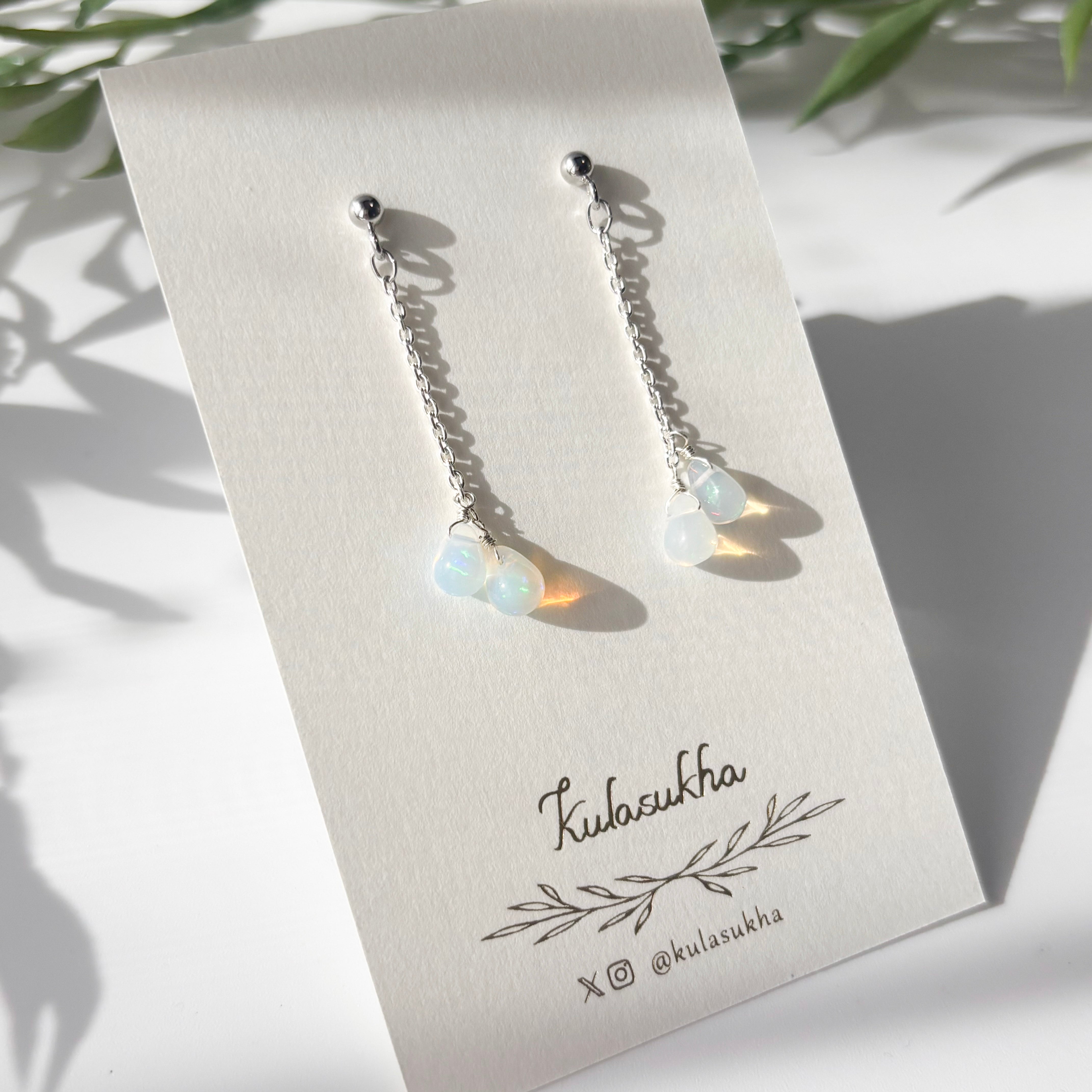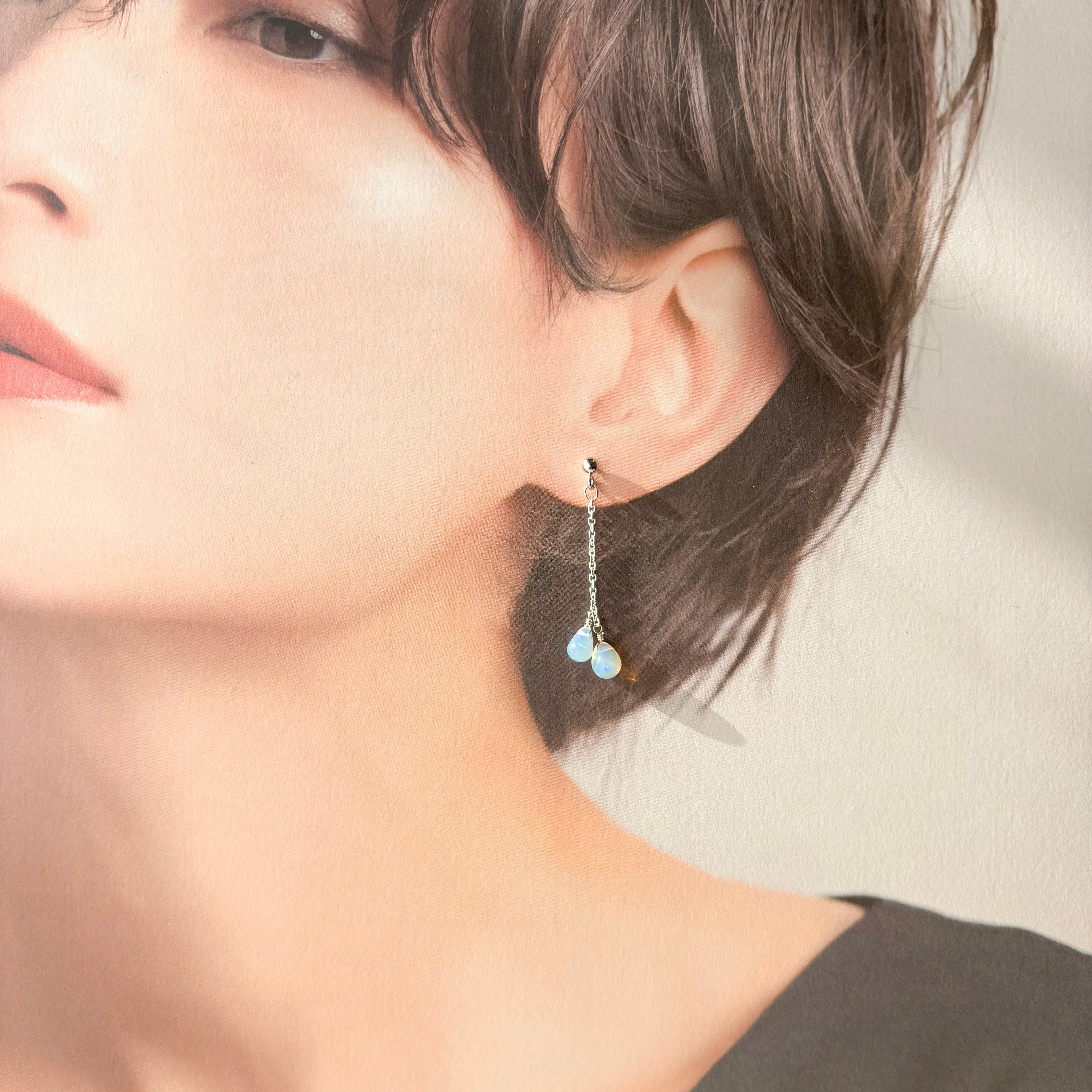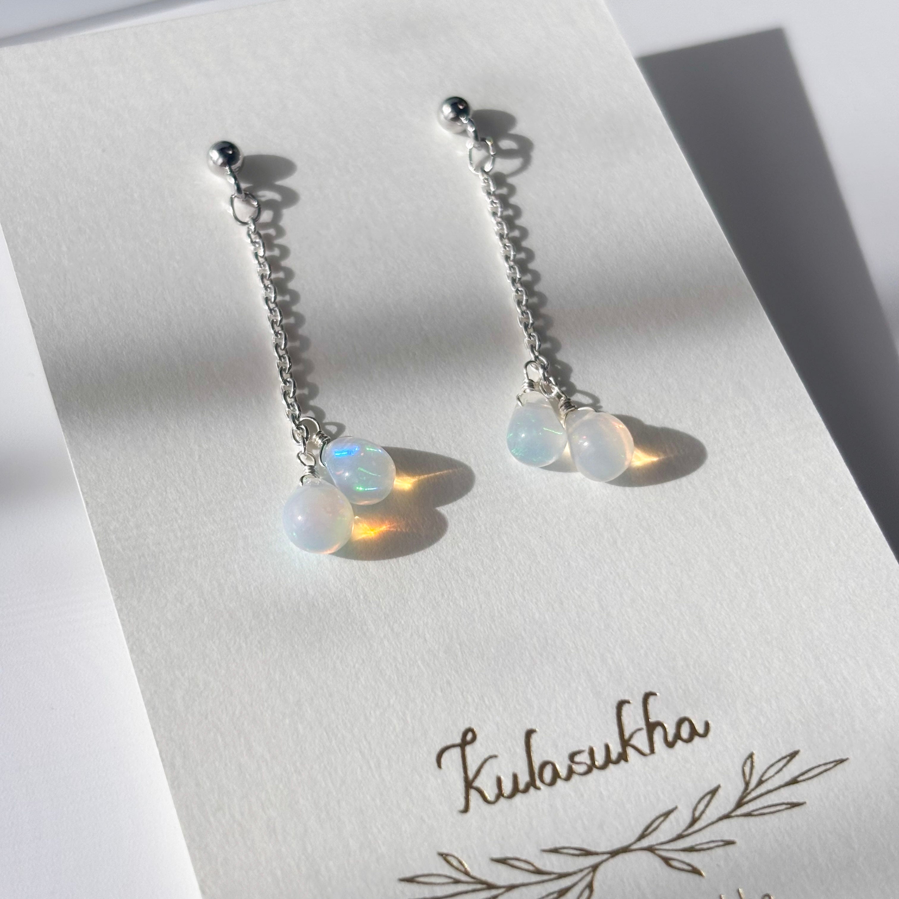 瑞々しいオパールと純銀チェーンの揺れるピアス
