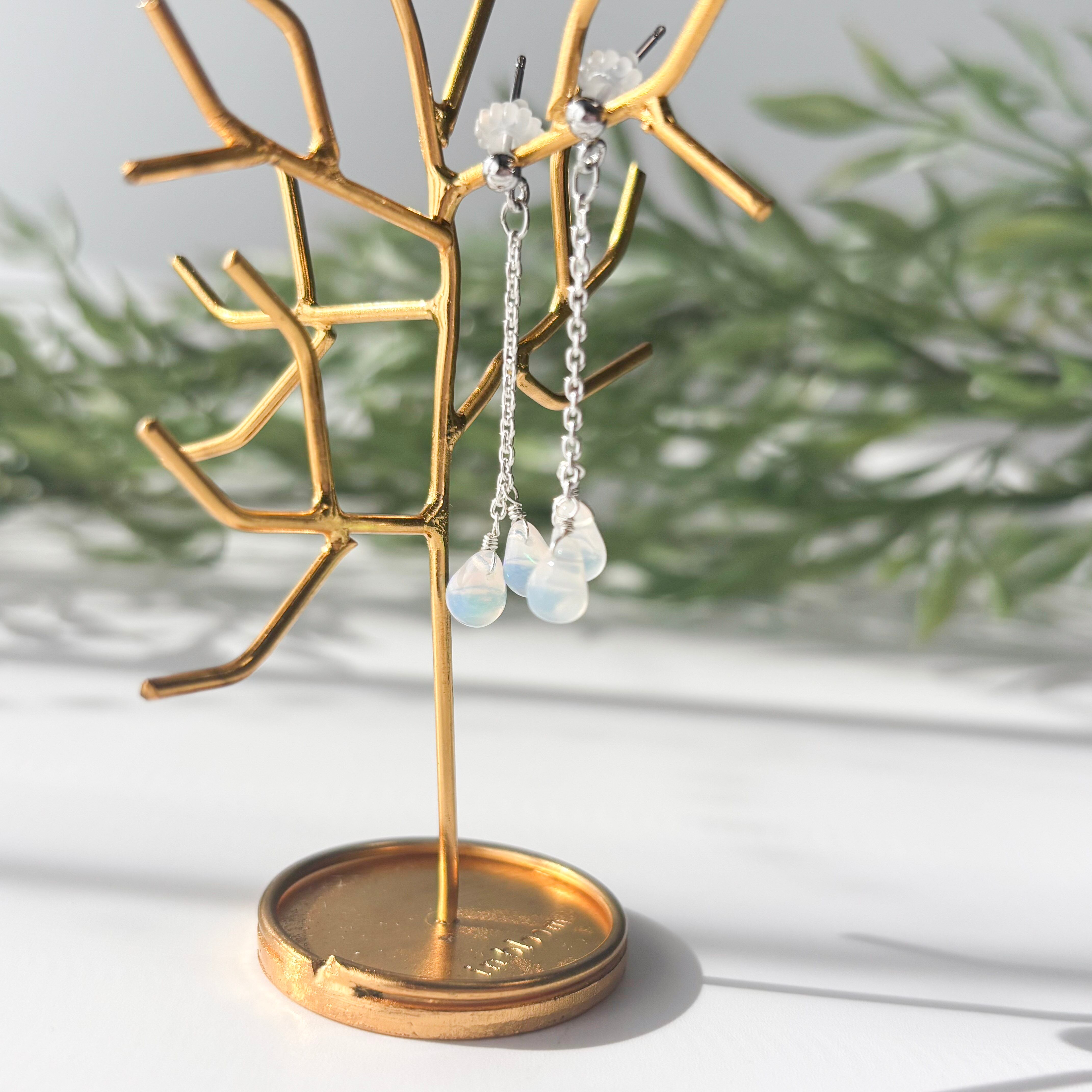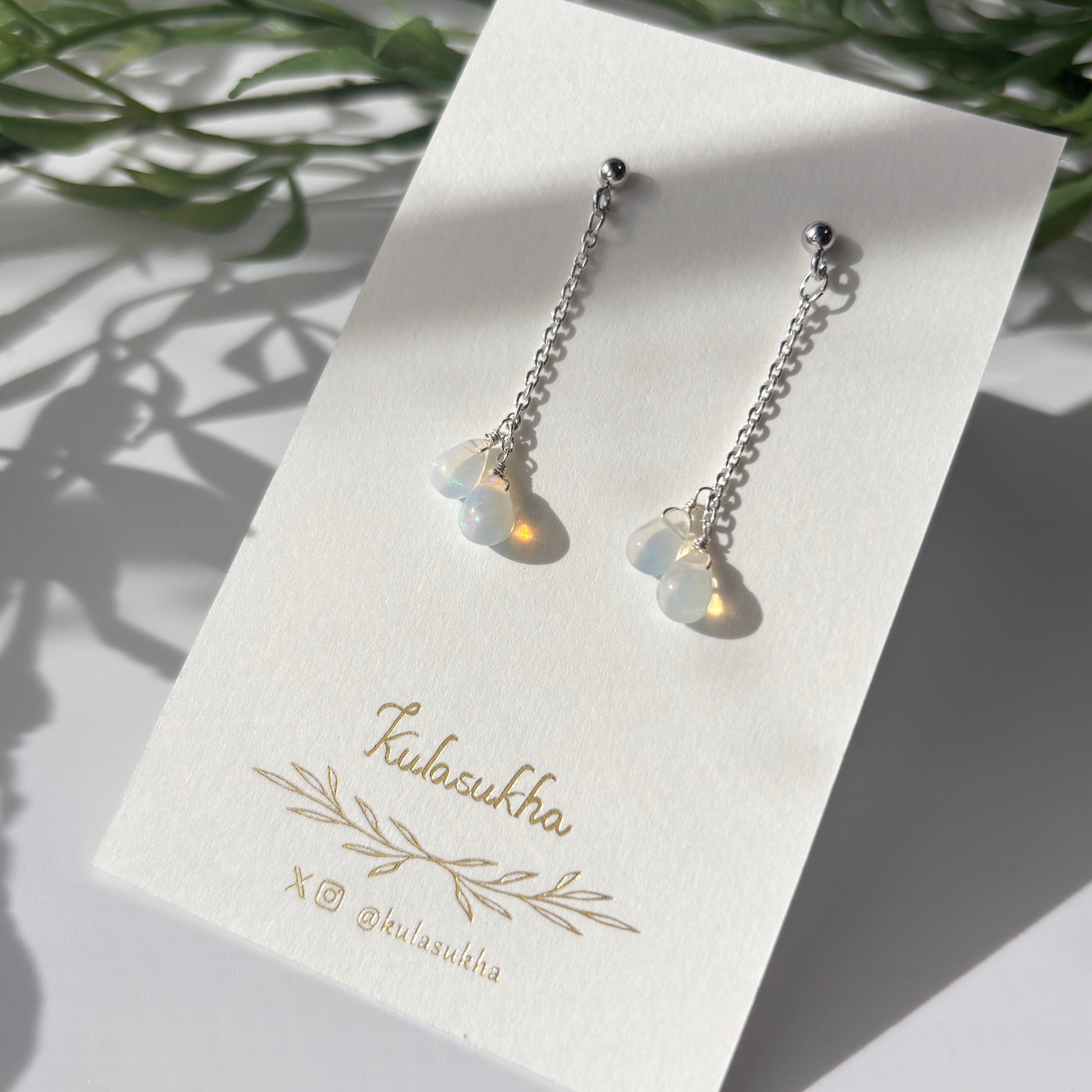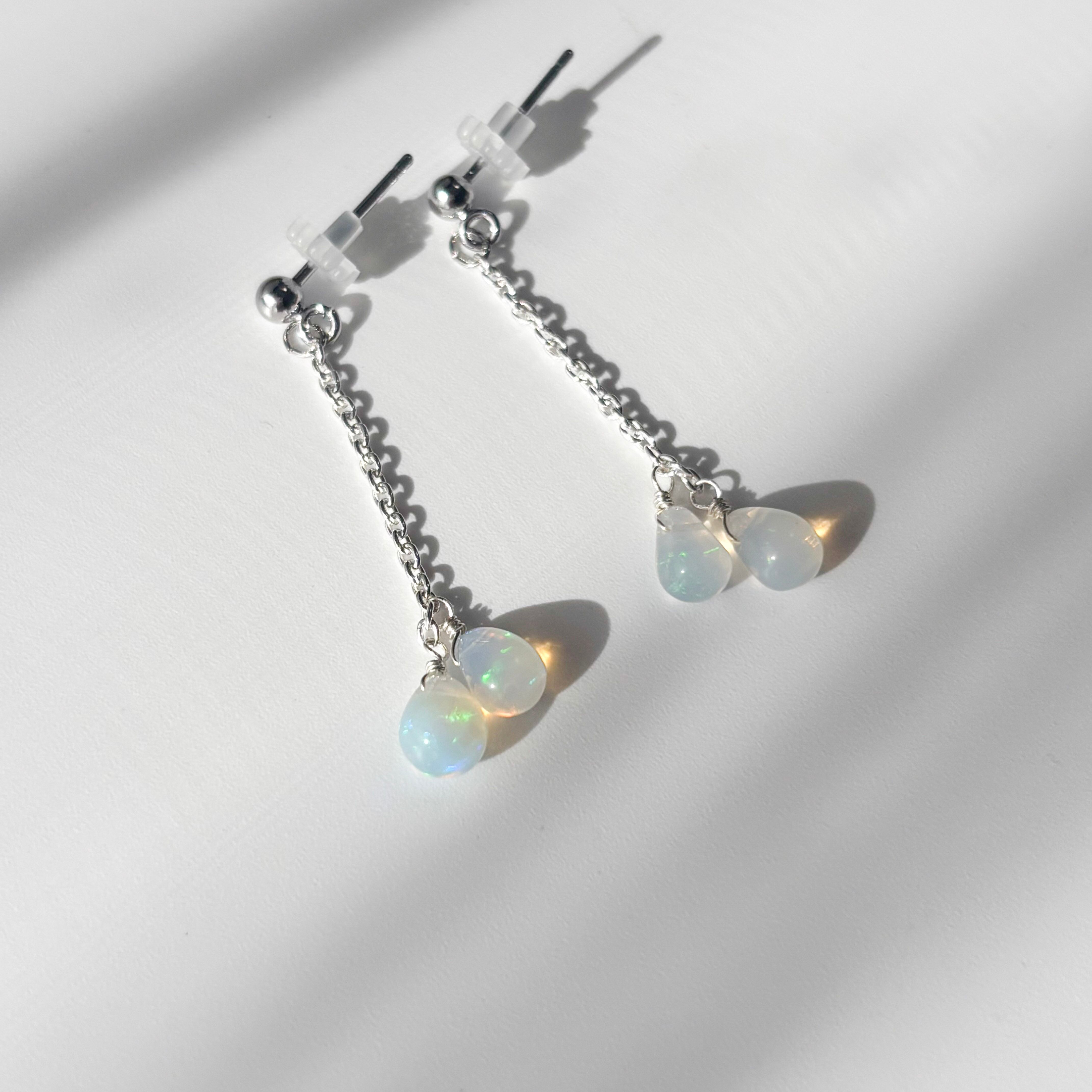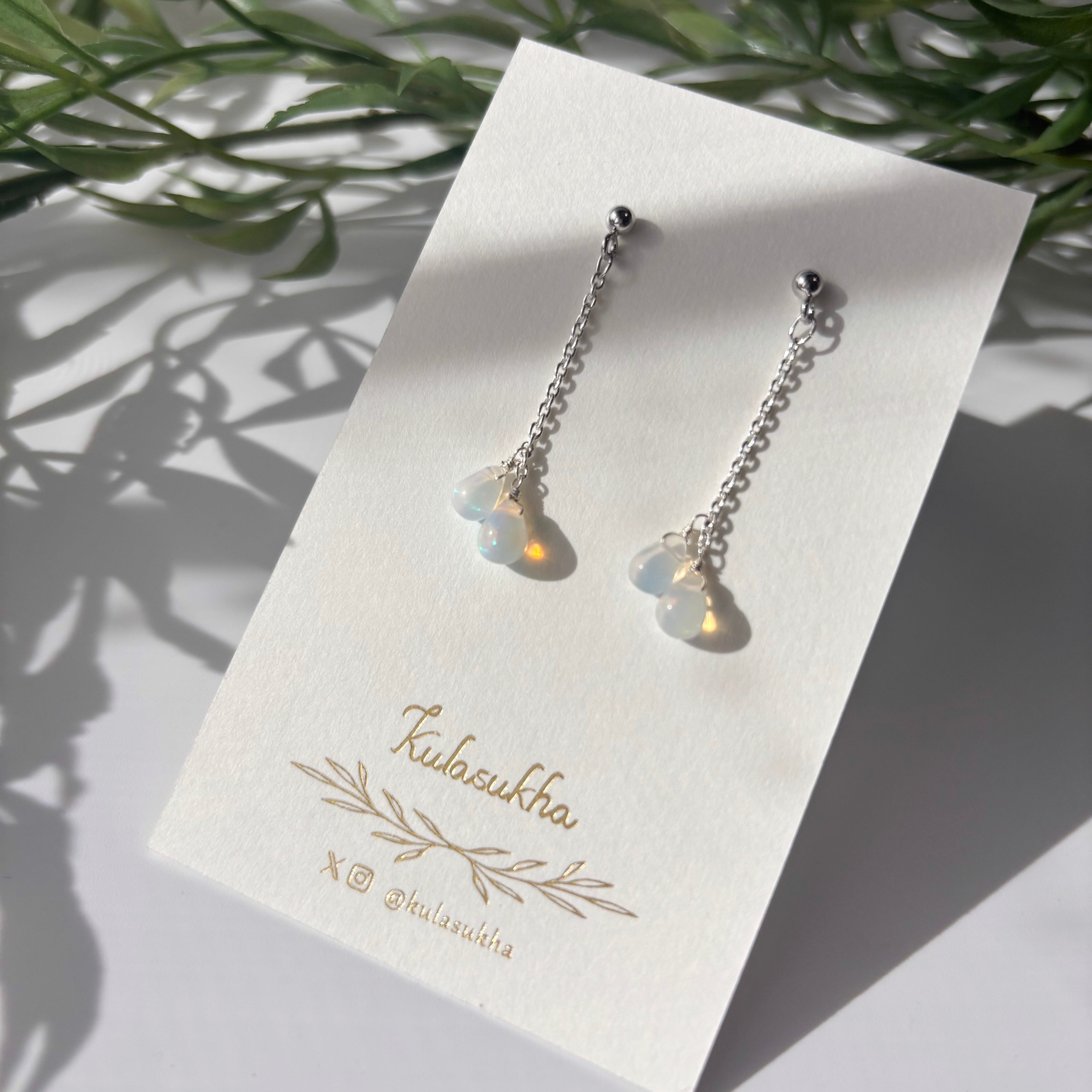 瑞々しいオパールと純銀チェーンの揺れるピアス
