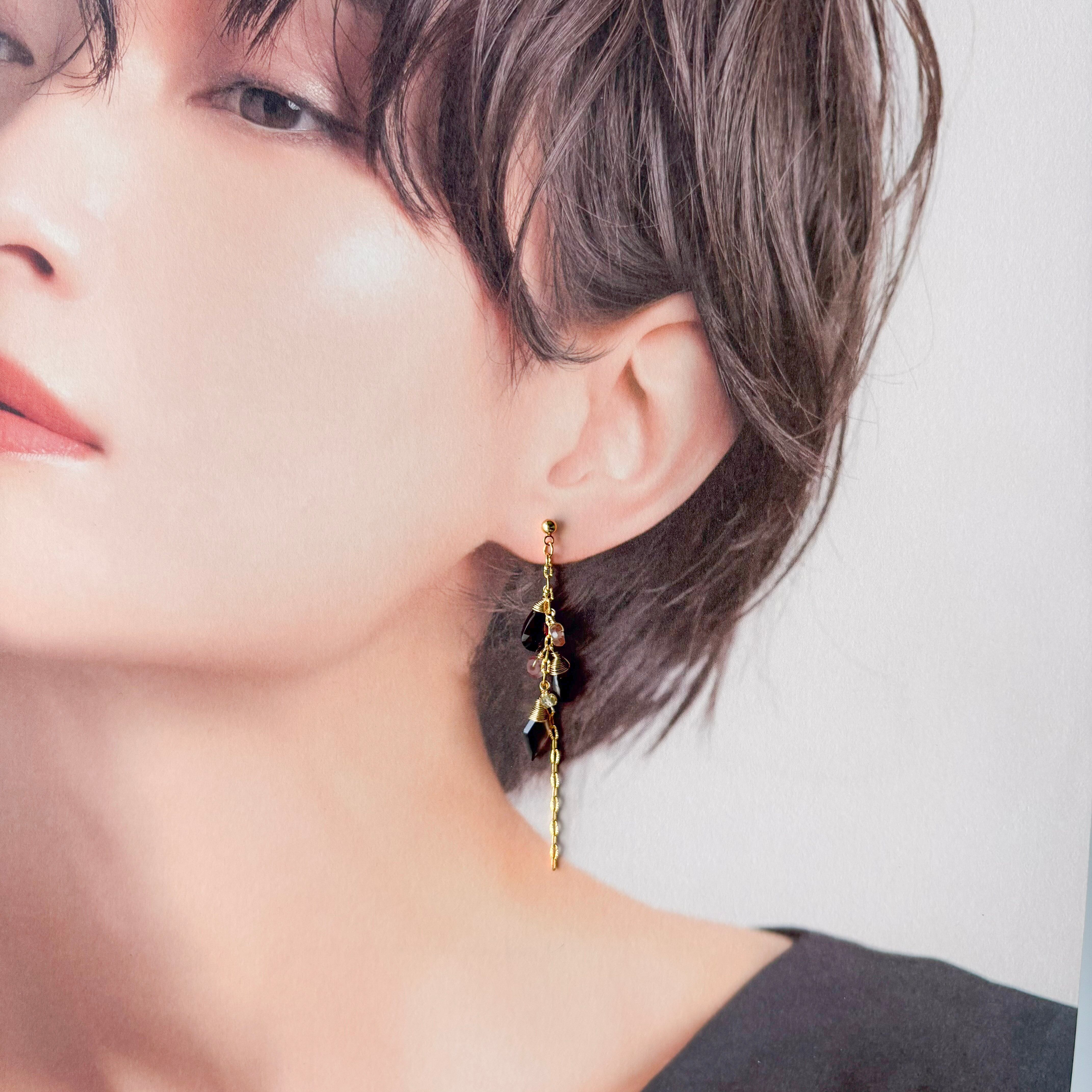 先端にぶら下げたスモーキークォーツのダイヤ型カットが、より洗練された印象にしてくれています。