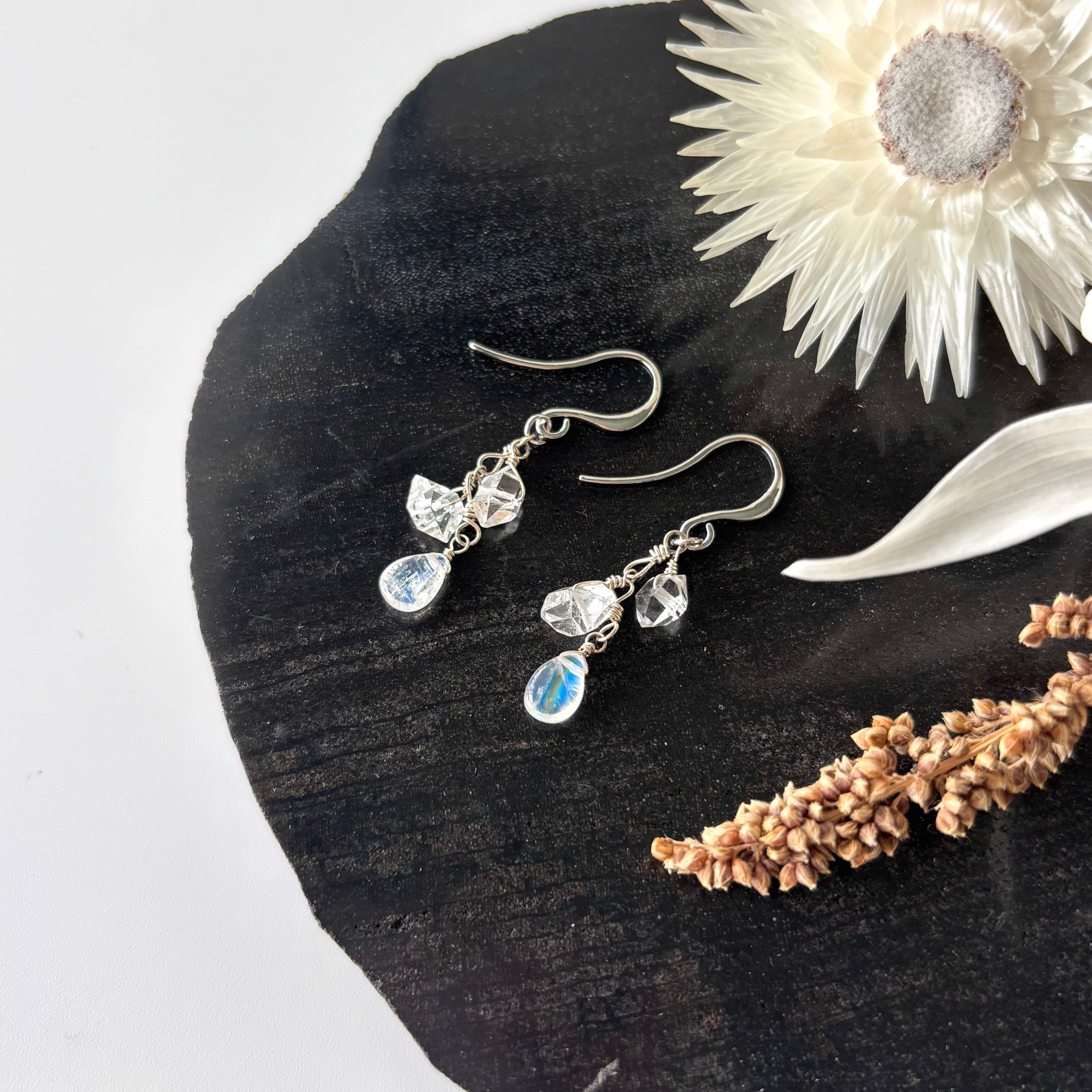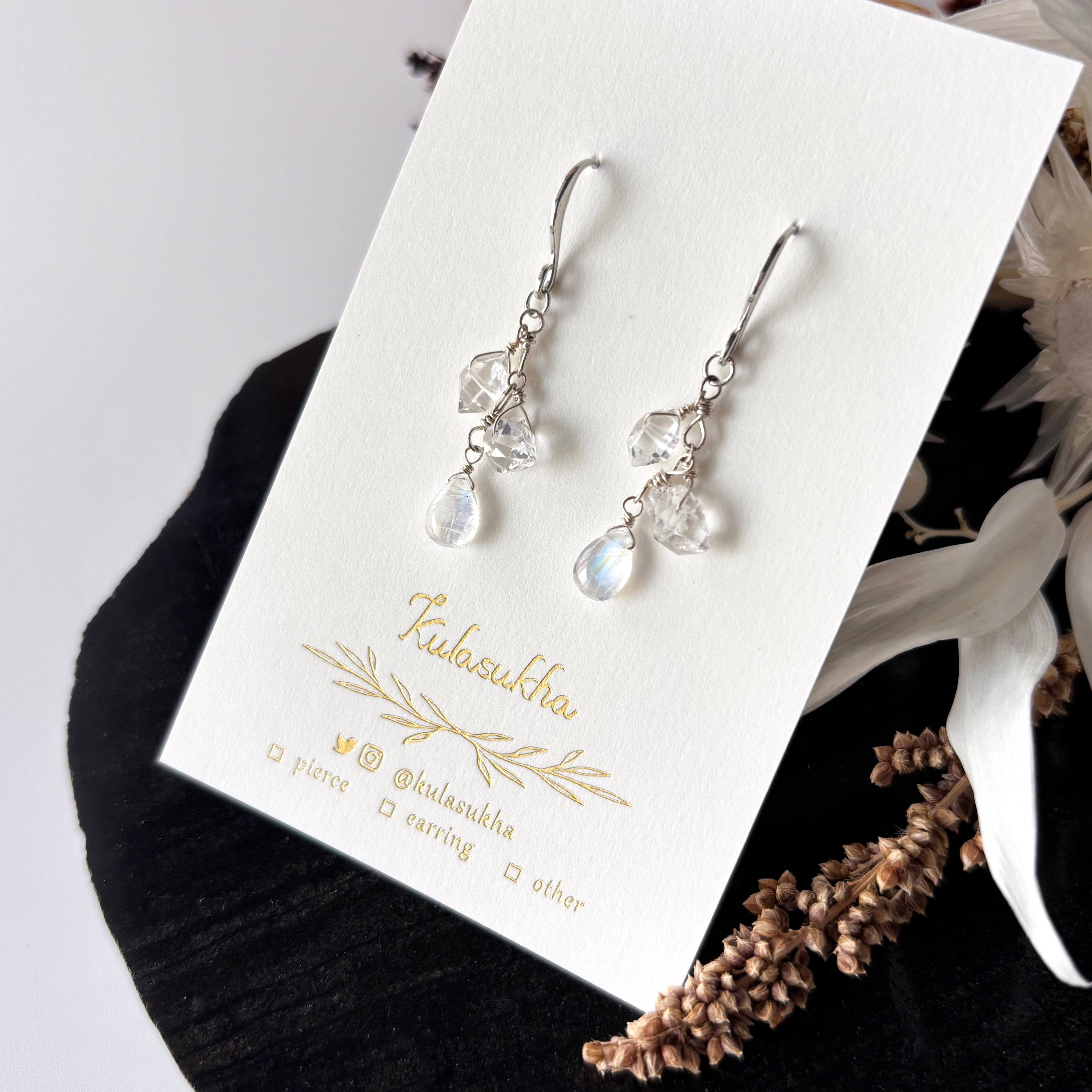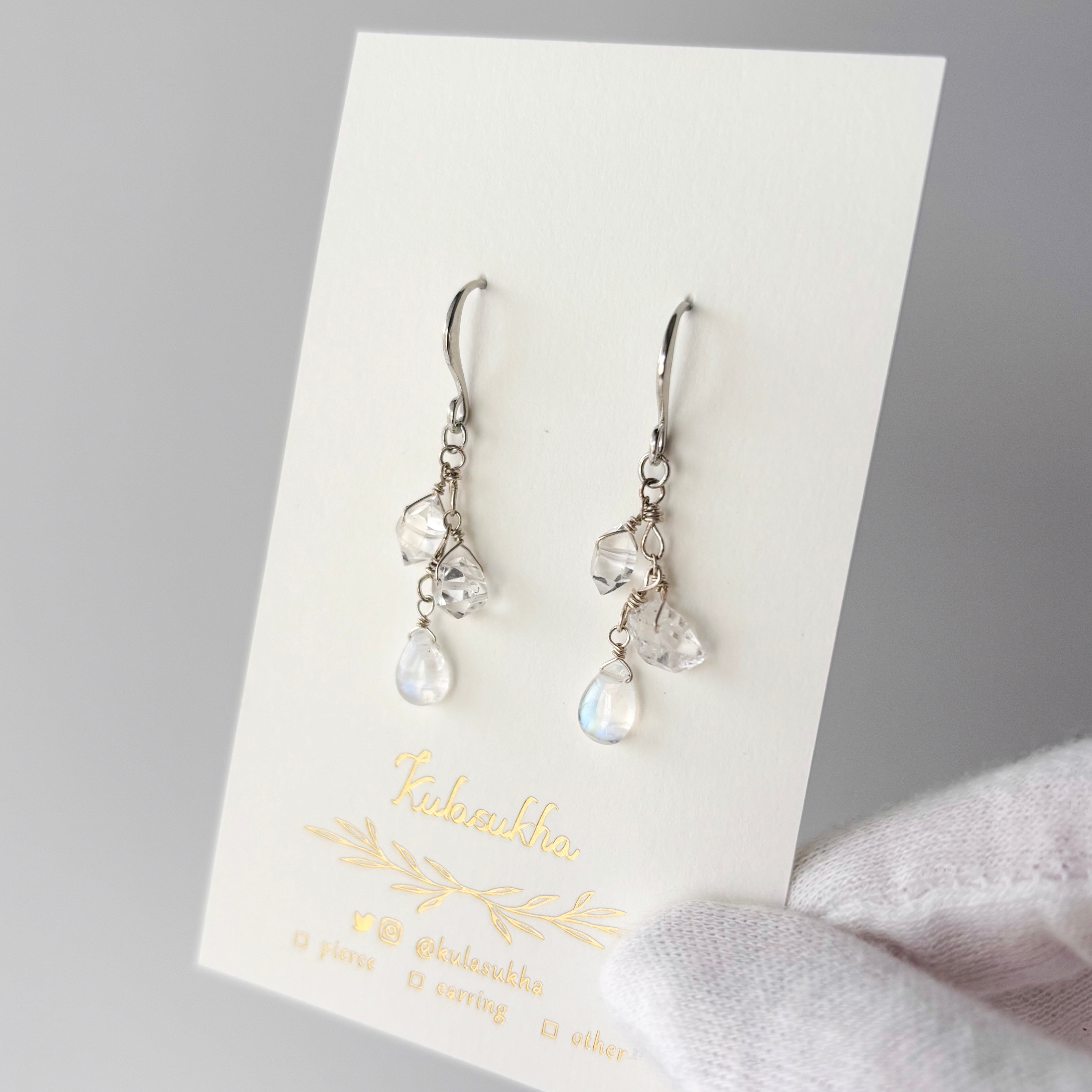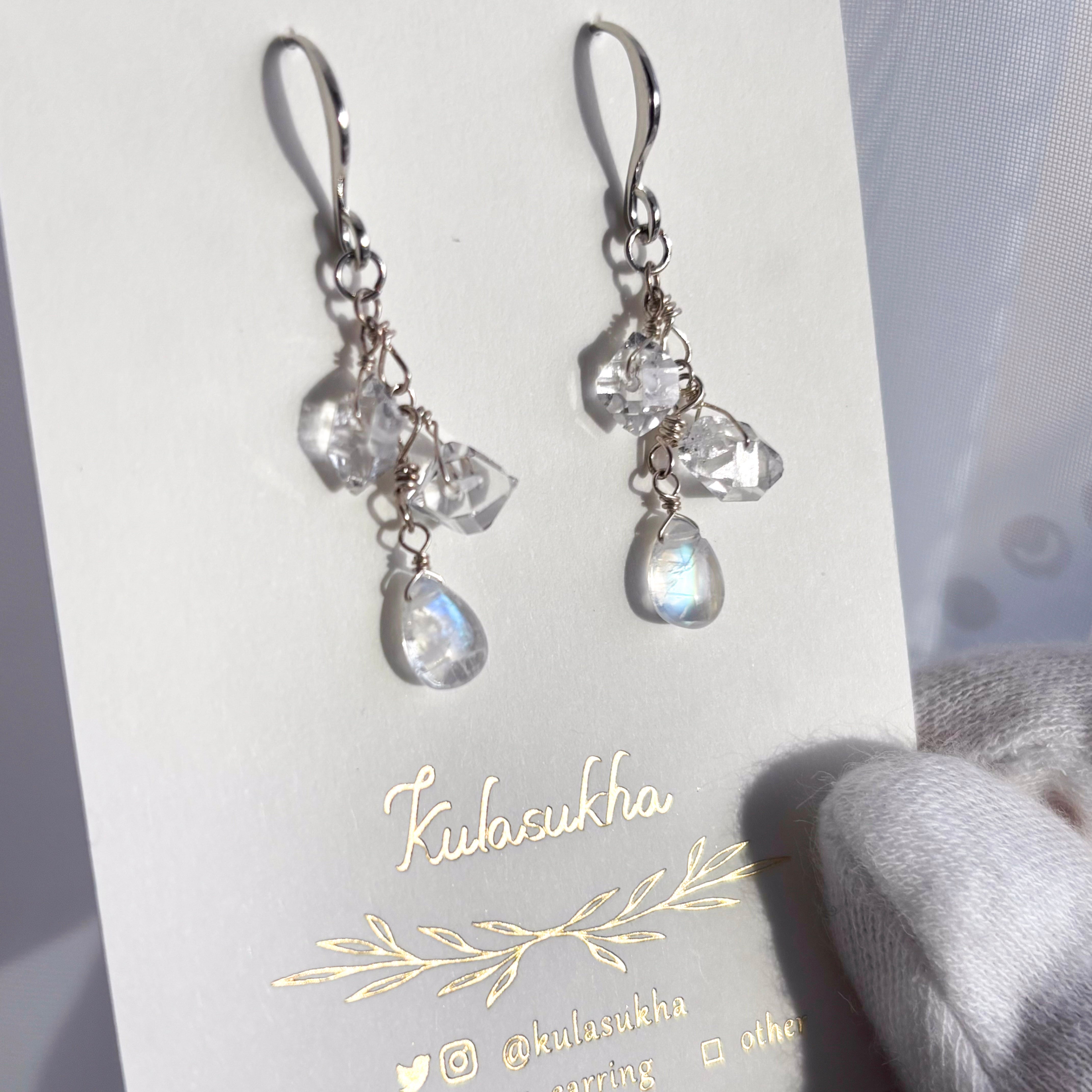 大粒ハーキマーダイヤモンドとレインボームーンのシルバーピアス