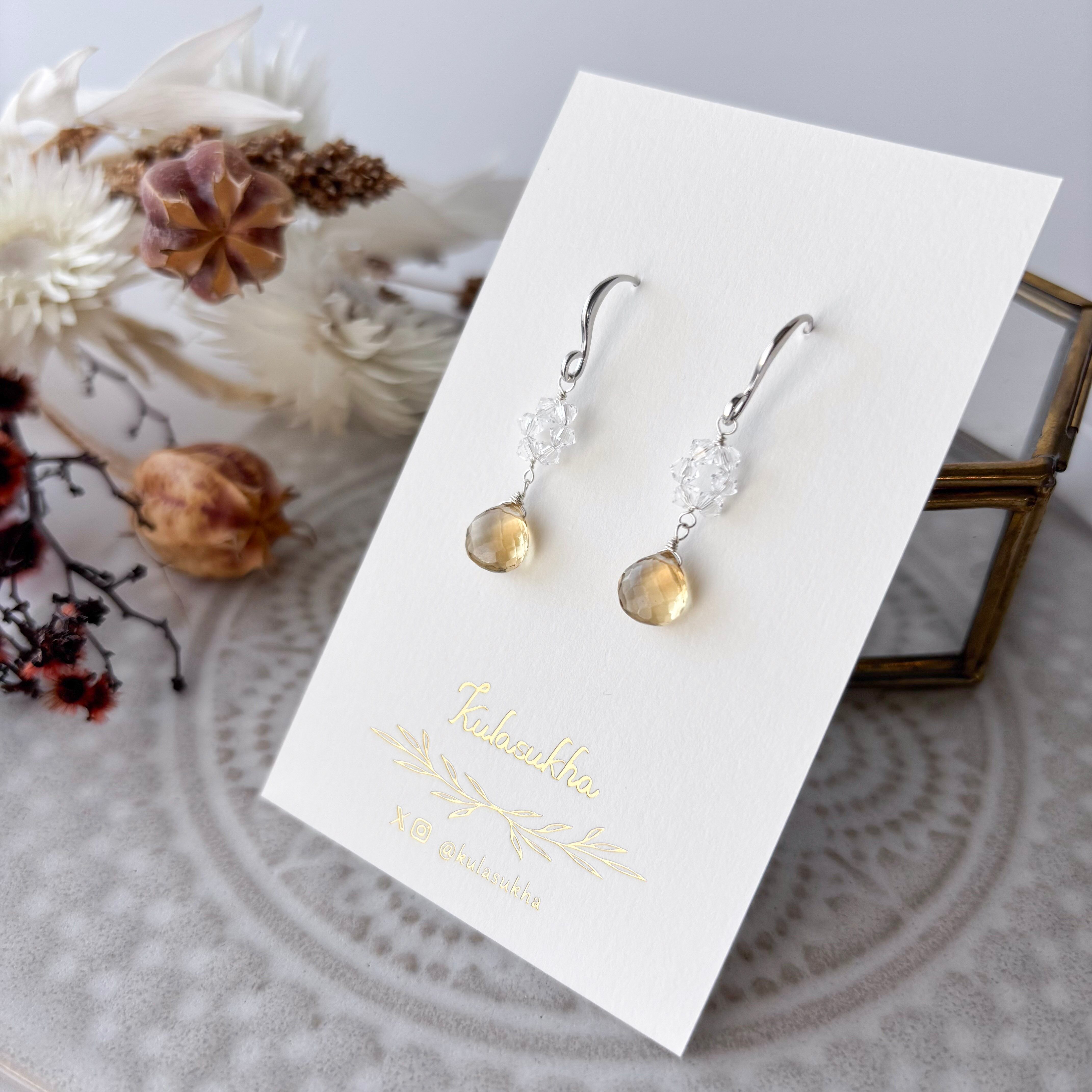 スワロフスキークリスタルと極上カットシャンパンクォーツのシルバーピアス
