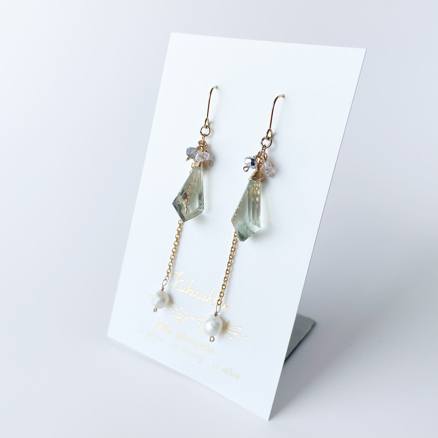 美しすぎる、変形ダイヤ型のグリーンアメジストのアクセサリー。